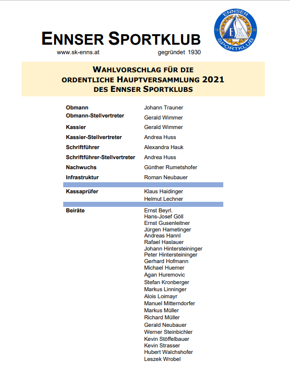 Wahlvorschlag HVS 2021